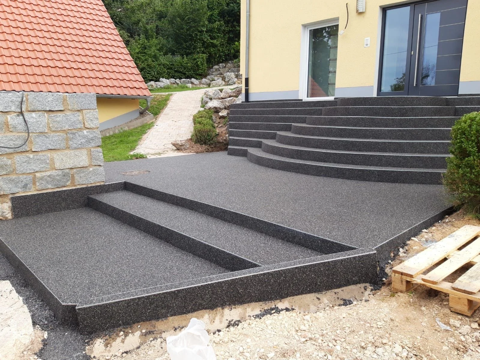 Hier finden Sie eine Auswahl unserer erfolgreich abgeschlossenen Arbeiten. Vom Balkon bis zum Eingangsbereich – unsere Steinteppiche verbinden Design und Funktionalität.